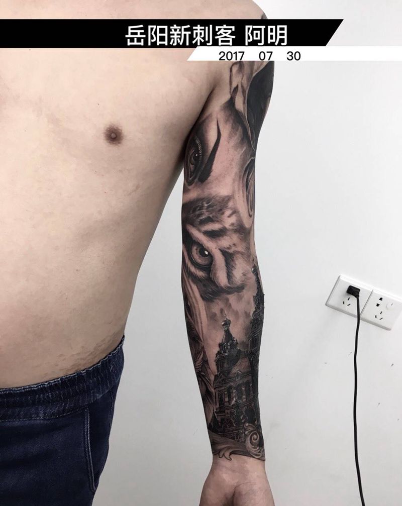 阿明作品纹身图片_欧美写实成品手臂人物肖像原创纹身图案