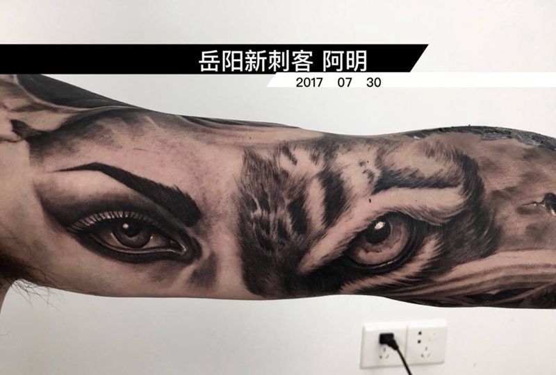当前位置: 首页 >湖南省岳阳市纹身店-岳阳新刺客纹身图案>阿明作品纹身图片_欧美写实成品手臂人物肖像原创纹身图案
