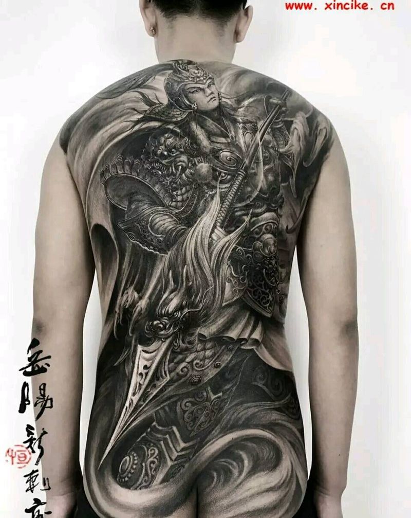 赵云之枪出如龙纹身图片_背部传统写实人物满背满背赵云成品纹身图案