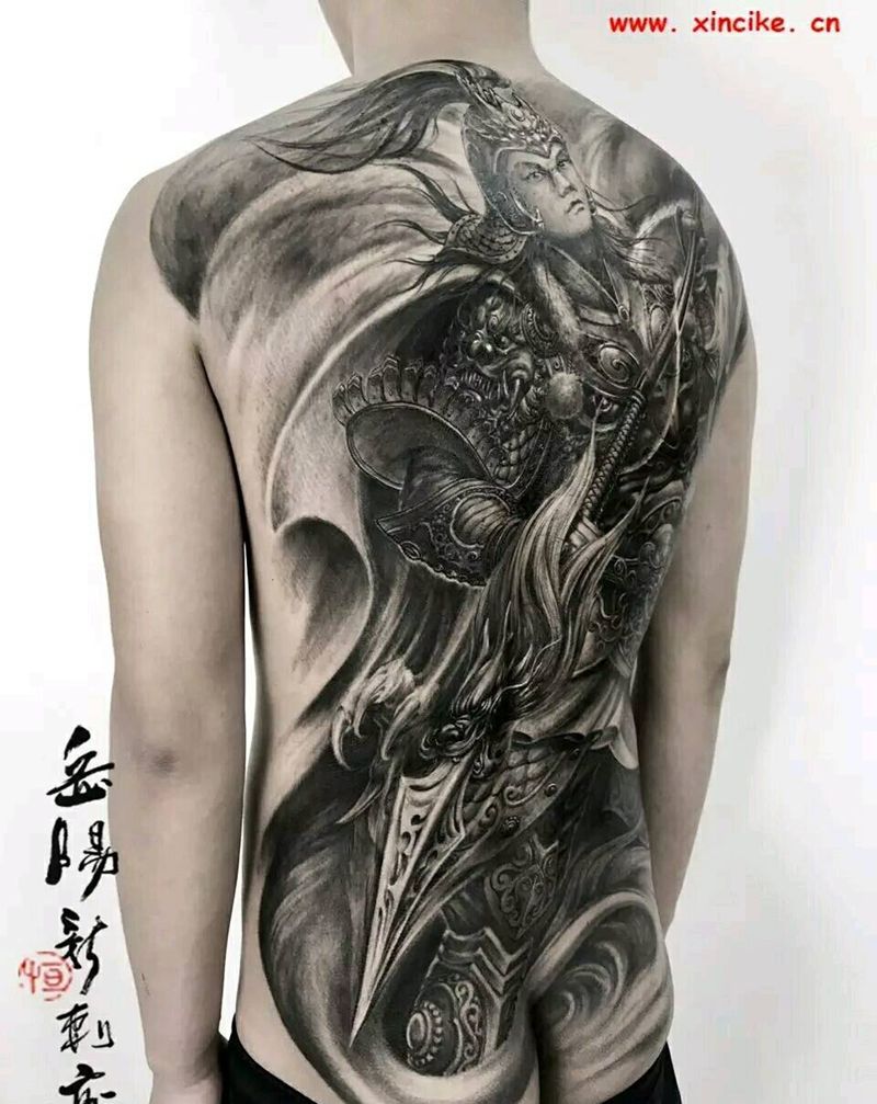 赵云之枪出如龙纹身图片_背部传统写实人物满背满背赵云成品纹身图案