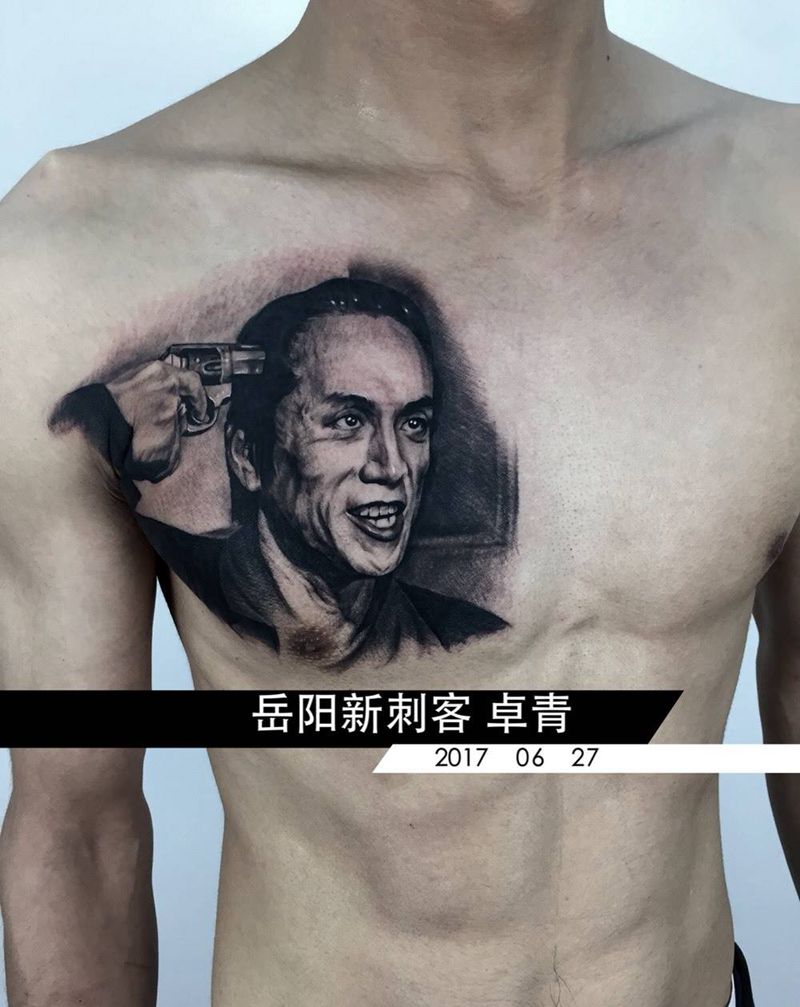 卓青作品纹身图片_胸部成品写实肖像原创人物纹身图案
