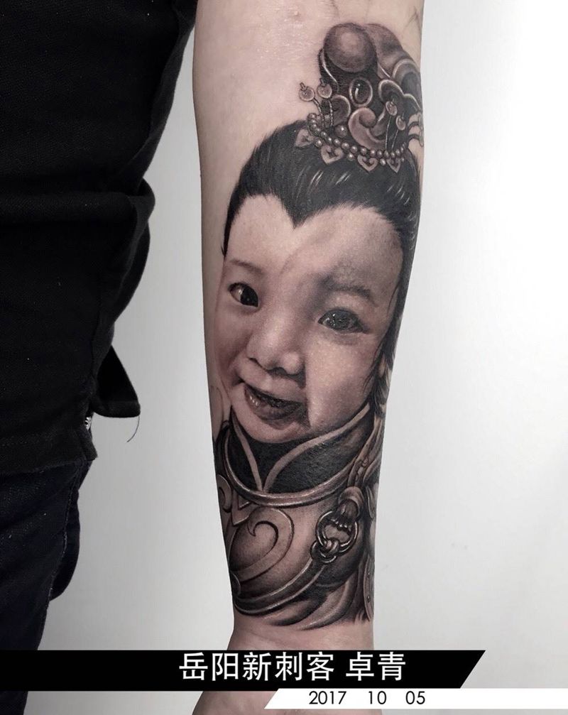 卓青作品纹身图片_成品手臂写实肖像欧美原创人物纹身图案