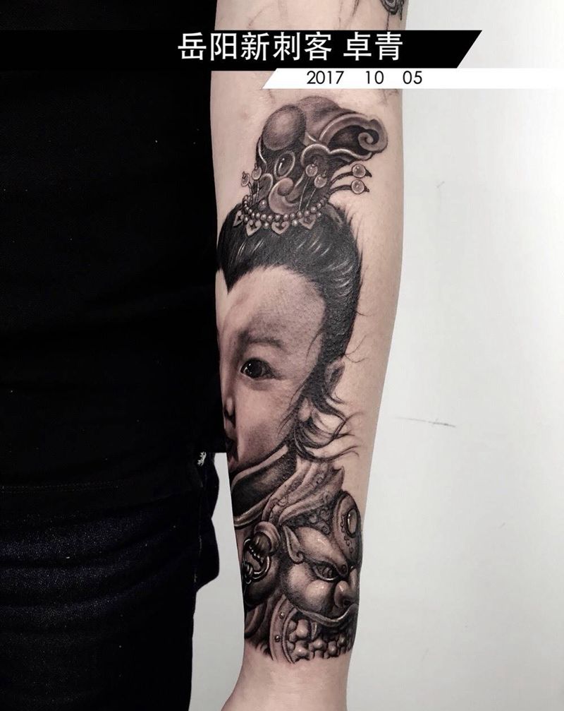 卓青作品纹身图片_成品手臂写实肖像欧美原创人物纹身图案
