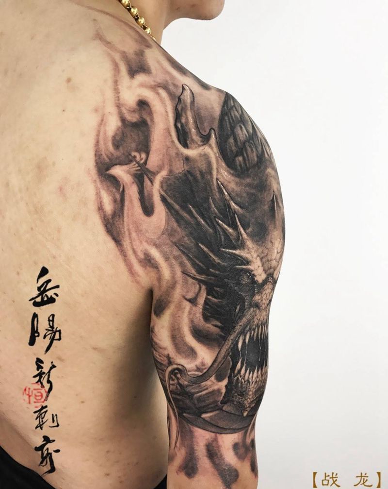 当前位置: 首页 >湖南省岳阳市纹身店-岳阳新刺客纹身图案>战龙纹身图片_欧美写实成品手臂原创动物龙纹身图案
