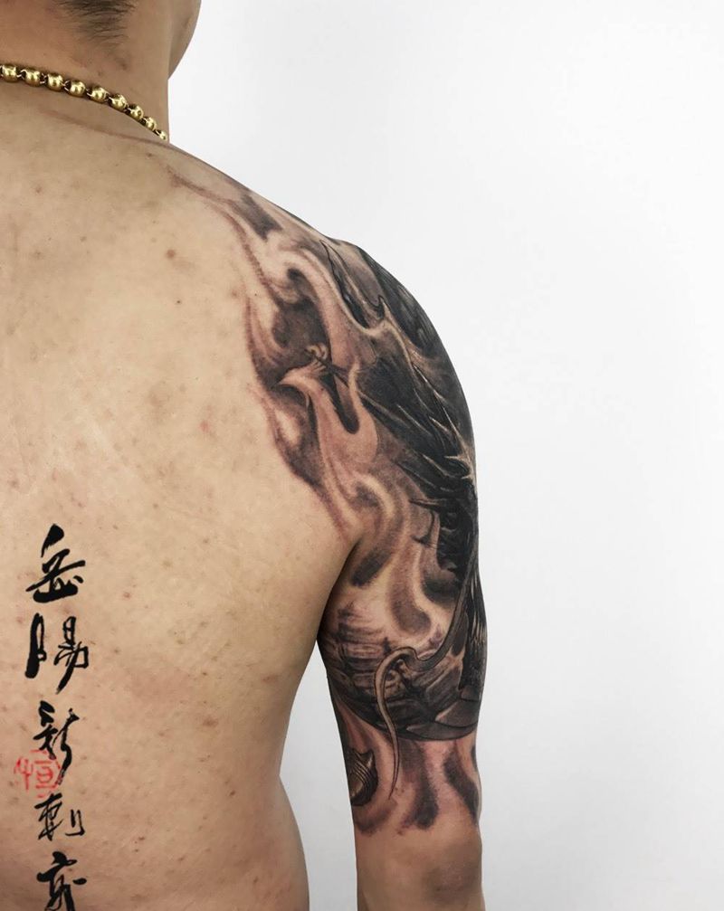 当前位置: 首页 >湖南省岳阳市纹身店-岳阳新刺客纹身图案>战龙纹身图片_欧美写实成品手臂原创动物龙纹身图案
