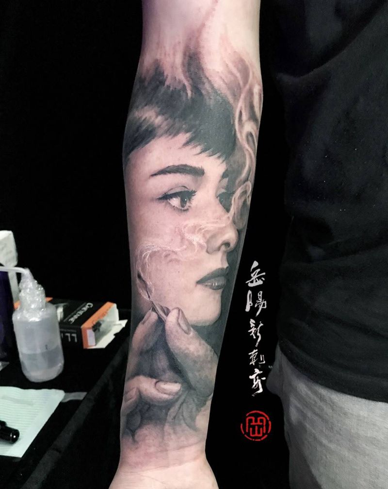 昨天展会现场与作品纹身图片_成品手臂写实肖像人物原创纹身图案