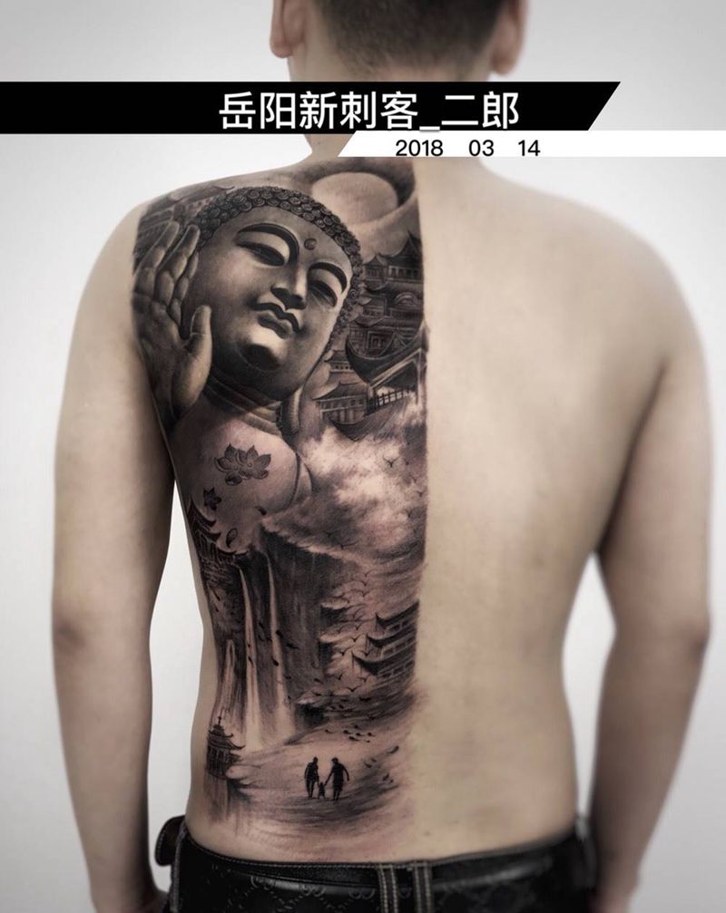 二郎作品纹身图片_成品背部传统写实原创宗教佛纹身图案