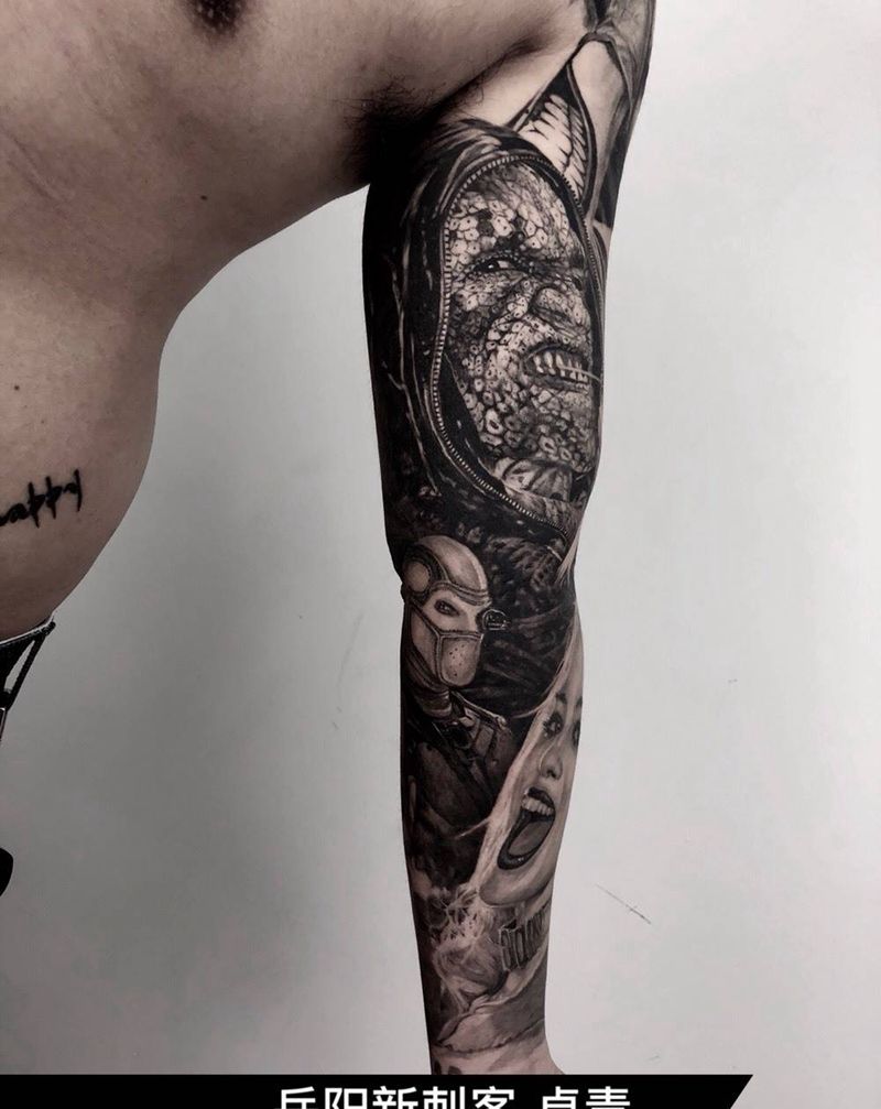 当前位置: 首页 >湖南省岳阳市纹身店-岳阳新刺客纹身图案>卓青作品纹身图片_成品手臂写实欧美肖像原创人物纹身图案