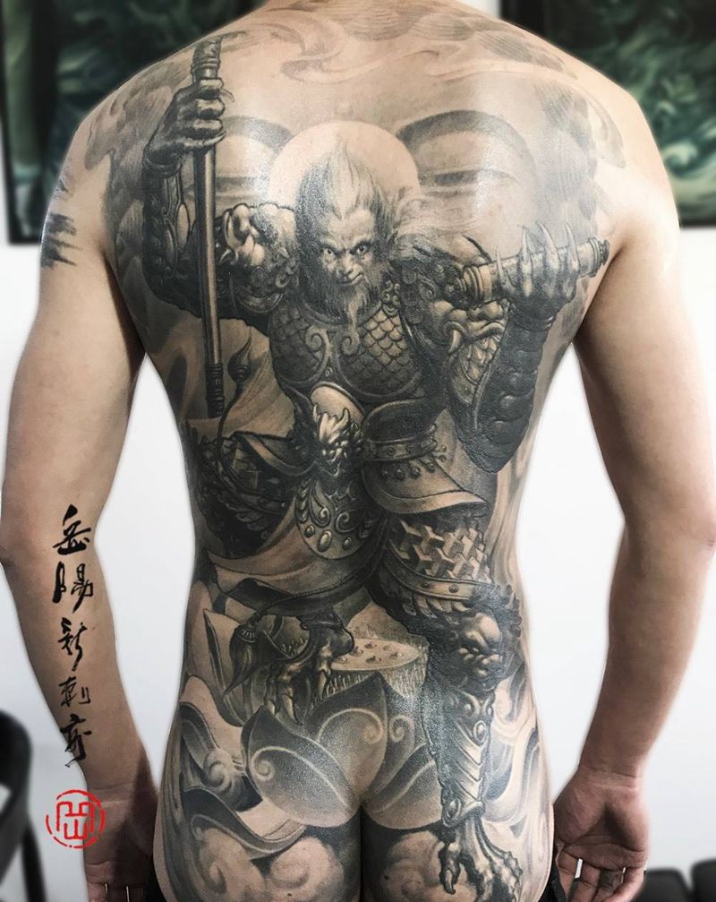 当前位置: 首页 >湖南省岳阳市纹身店-岳阳新刺客纹身图案>无法纹身图片_成品背部传统写实原创鬼神猴子纹身图案