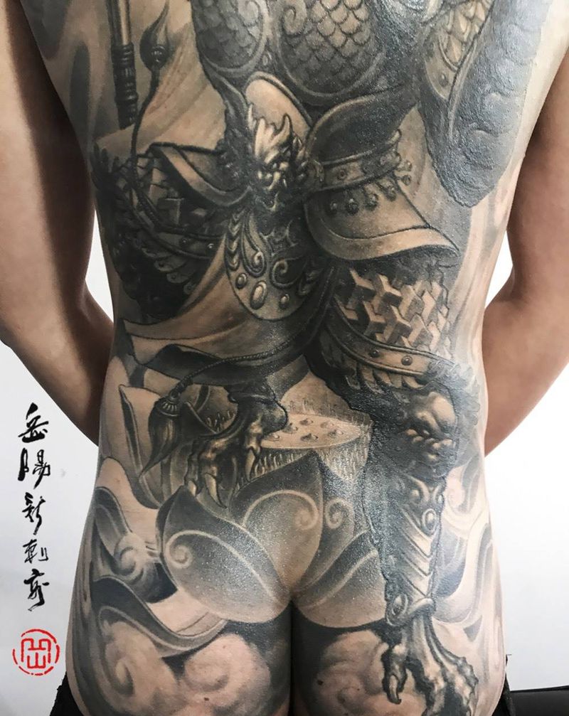 • 黑灰满背纹身图案