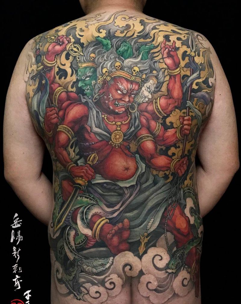 千手作品纹身图片_成品背部手臂传统原创鬼神宗教人物纹身图案