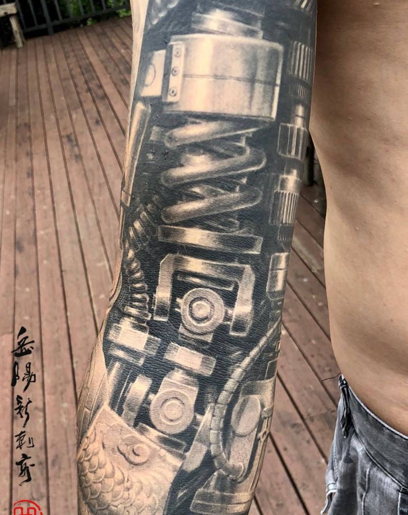 雕龙臂纹身图片_成品手臂写实传统原创龙石雕机械纹身图案