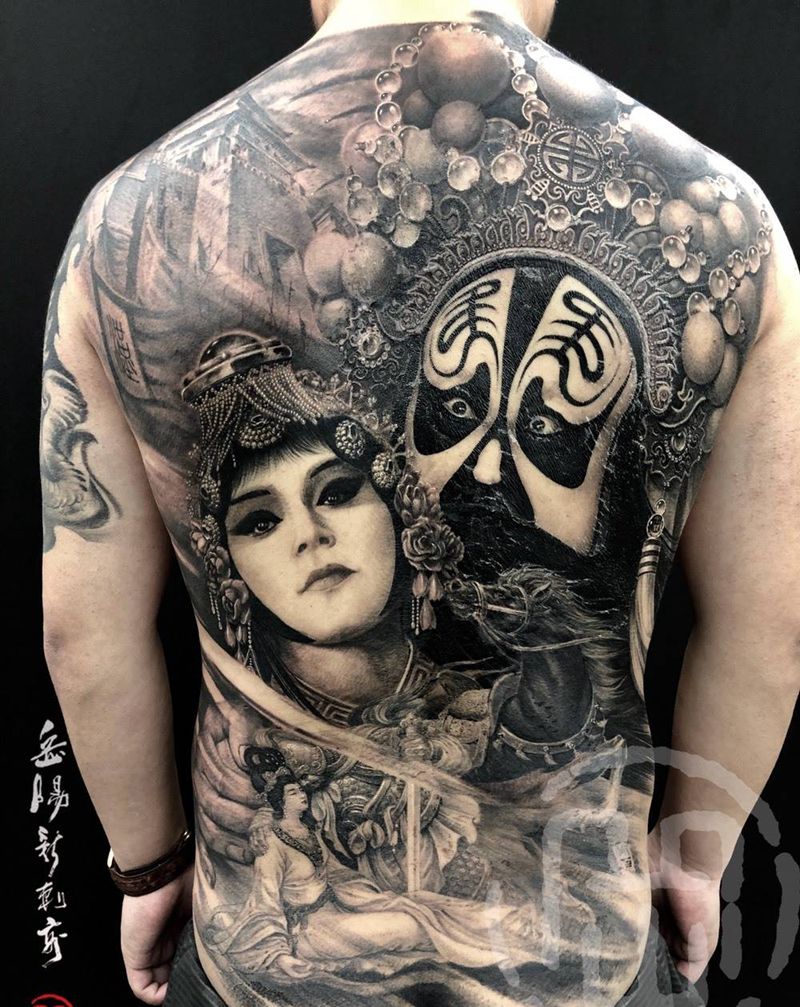当前位置: 首页 >湖南省岳阳市纹身店-岳阳新刺客纹身图案>霸王别姬纹身图片_背部新传统欧美写实霸王别姬纹身图案