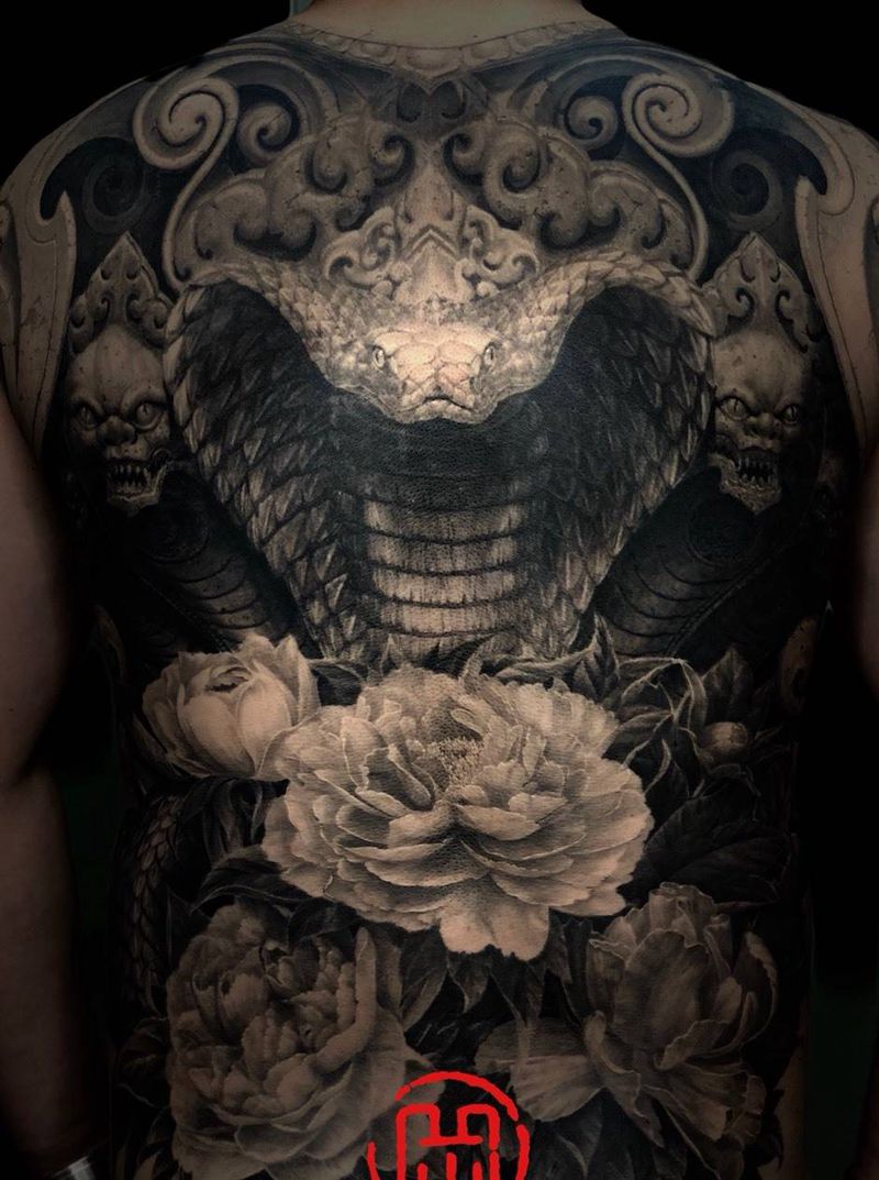 • 黑灰满背纹身图案