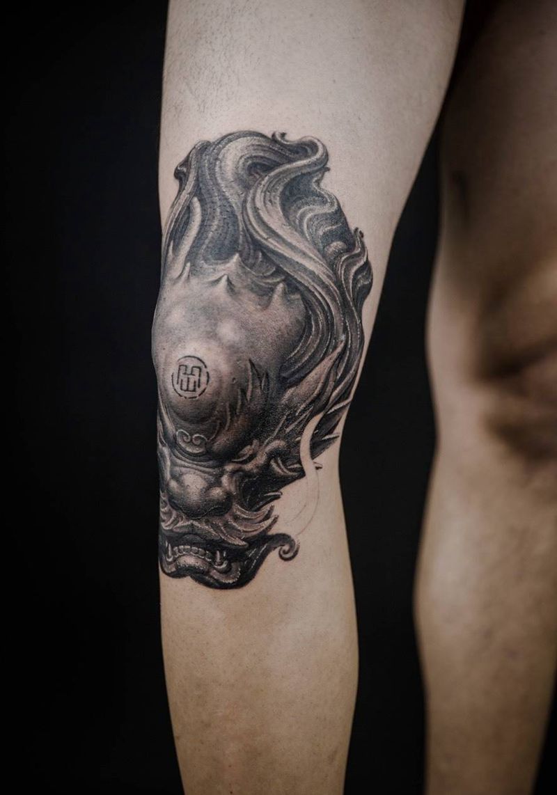 • T网红王老大花腿龙纹身图片_腿部新传统纹身图案
