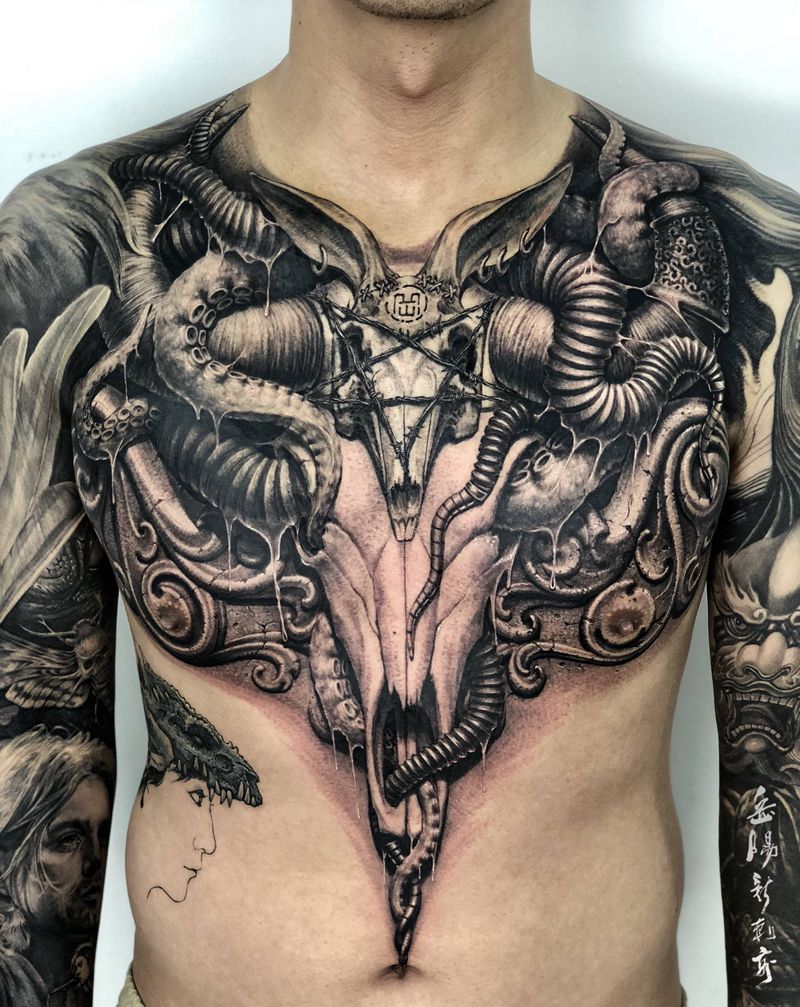 当前位置: 首页 >湖南省岳阳市纹身店-岳阳新刺客纹身图案>长生纹身图片_胸部欧美写实暗黑石雕机械纹身图案