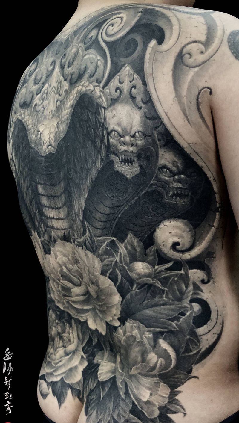 黑灰满背纹身图案