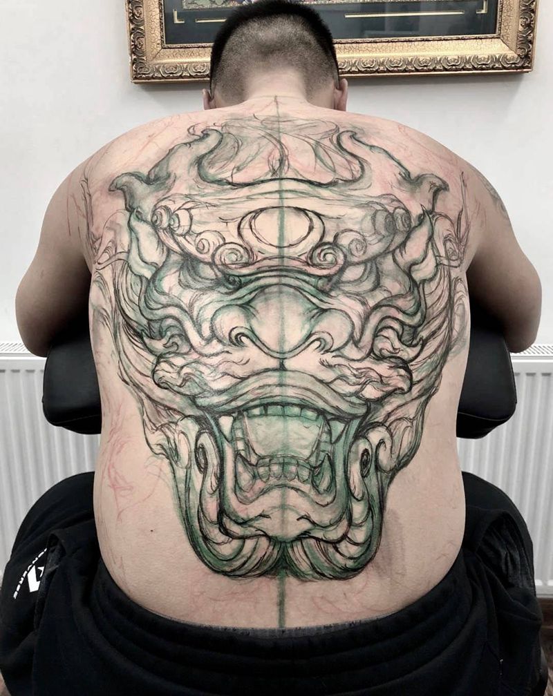 当前位置: 首页 >湖南省岳阳市纹身店-岳阳新刺客纹身图案>神龙壁6纹身图片_背部新传统欧美写实龙石雕纹身图案