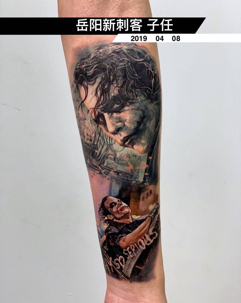 当前位置: 首页 >湖南省岳阳市纹身店-岳阳新刺客纹身图案>小丑纹身图片_手臂欧美写实彩色纹身图案