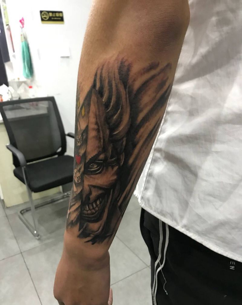当前位置: 首页 >湖南省岳阳市纹身店-第一次文身工作室纹身图案>小丑包小臂纹身图片