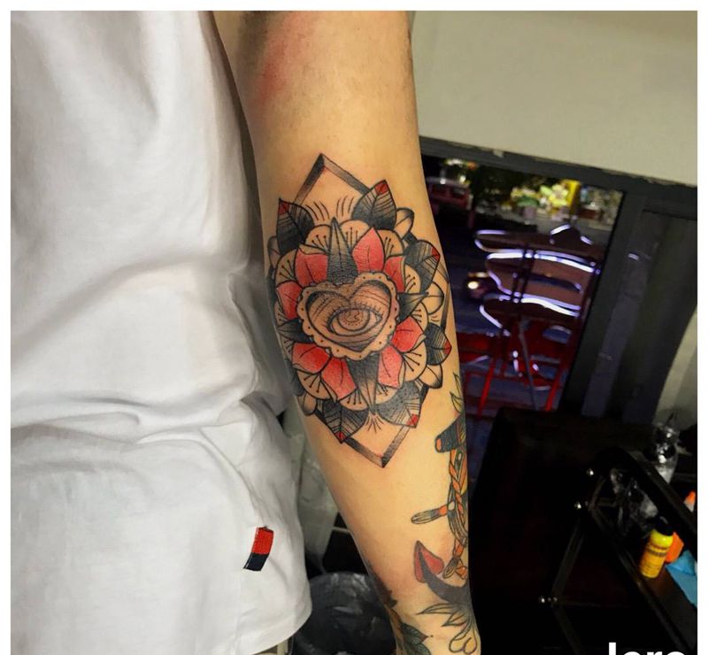 • 手背潮流时尚的玫瑰花眼睛纹身图案