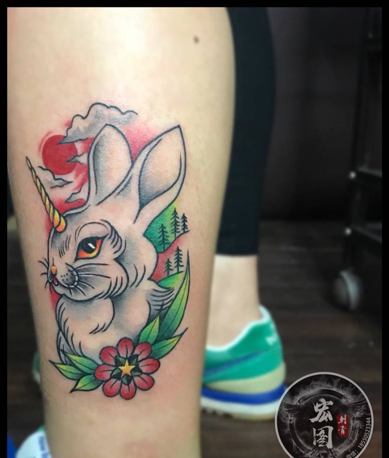 当前位置: 首页 >湖南省岳阳市纹身店-岳阳新刺客纹身图案>小兔子纹身图片_成品脚部欧美清新动物植物原创腿部手稿纹身图案