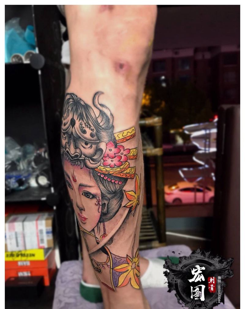 当前位置: 首页 >湖南省岳阳市纹身店-岳阳新刺客纹身图案>艺妓纹身图片_成品腿部传统人物纹身图案