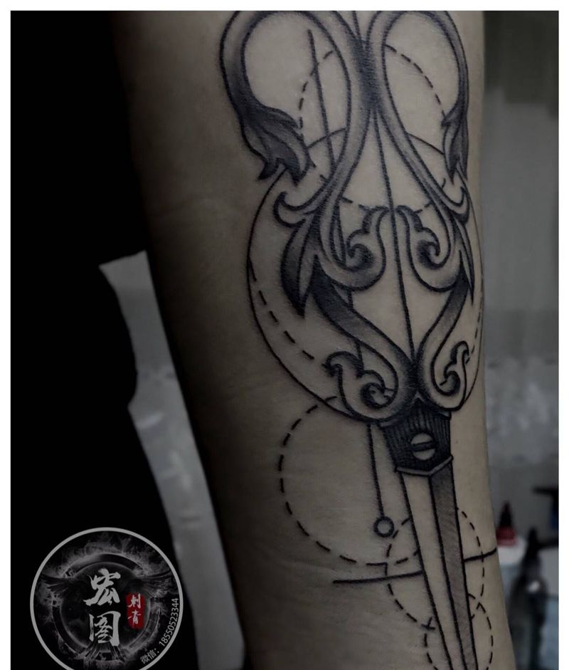 剪刀纹身图片_成品手稿手臂手部清新传统几何纹身图案