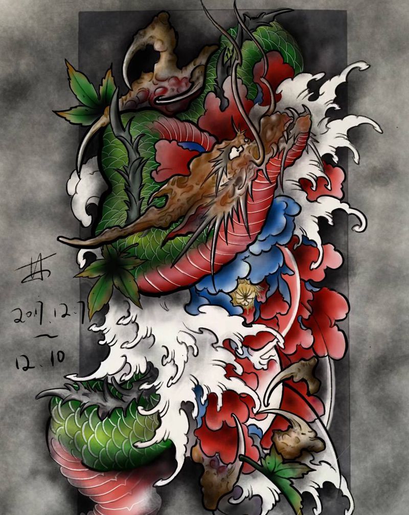 龙纹身图片_手稿插画手臂背部腿部传统习俗动物鬼神宗教纹身图案