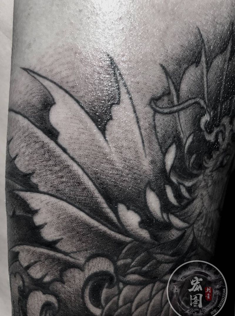 • T网红王老大花腿龙纹身图片_腿部新传统纹身图案