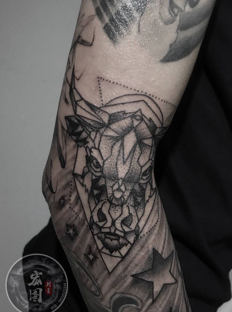 花臂进行中纹身图片_成品手臂手部欧美清新贴纸几何字符动物原创纹身图案