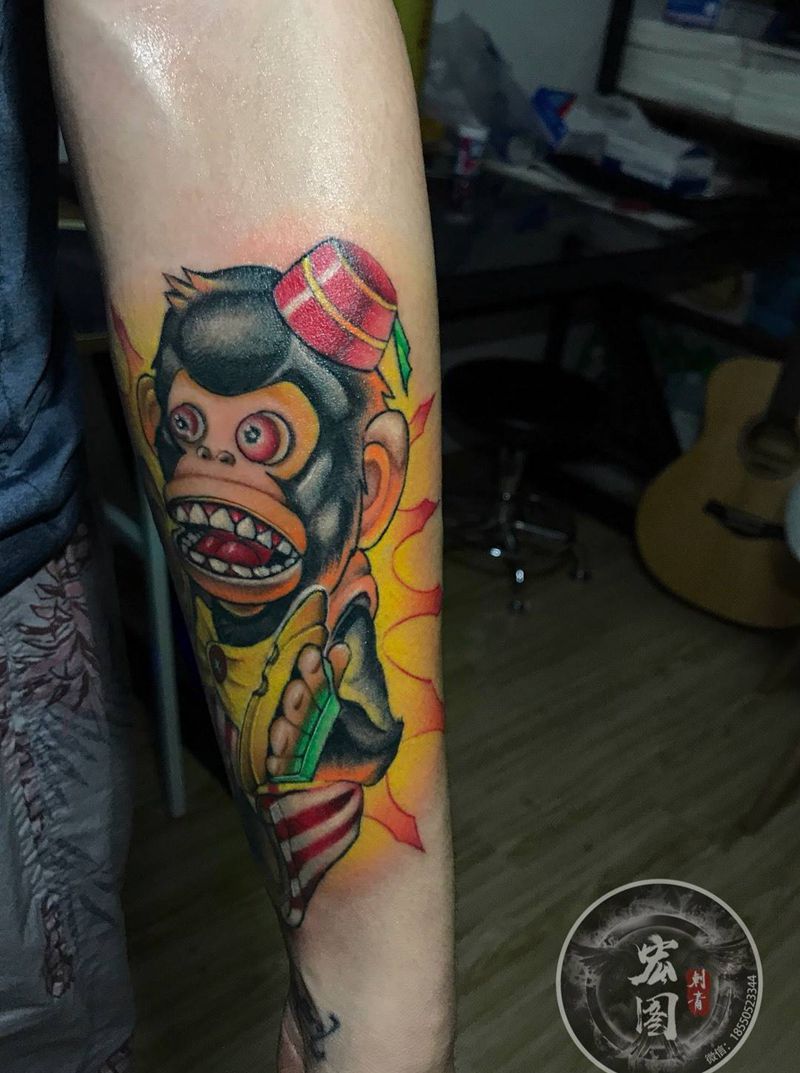 当前位置: 首页 >湖南省岳阳市纹身店-岳阳新刺客纹身图案>大嘴猴纹身图片_手臂手部New School纹身图案