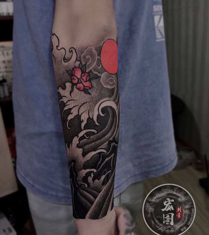 浪臂纹身图片_手臂手部新传统老传统纹身图案
