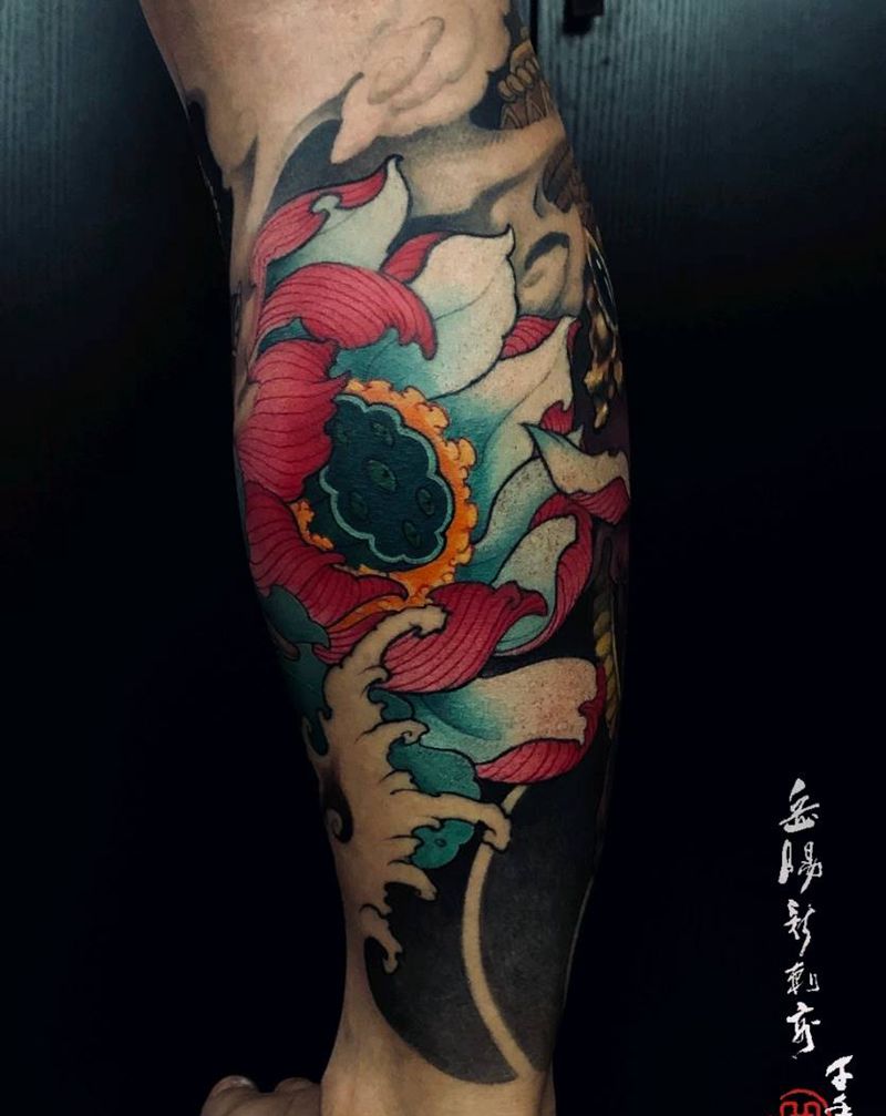 一组15张莲花纹身手