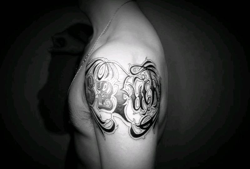 当前位置: 首页 >湖南省常德市纹身店-甲由刺青纹身图案>Chicano: lucky纹身图片_手臂花体字纹身图案