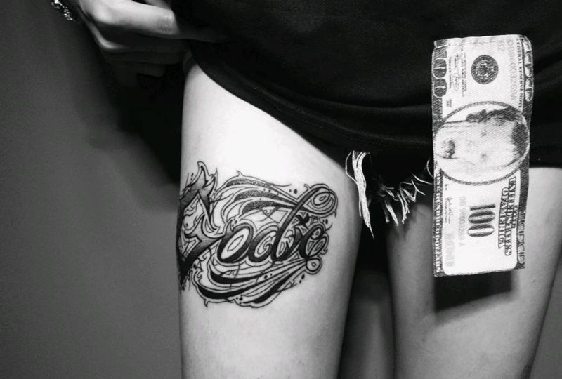 Chicano: GOdie.纹身图片_腿部花体字纹身图案