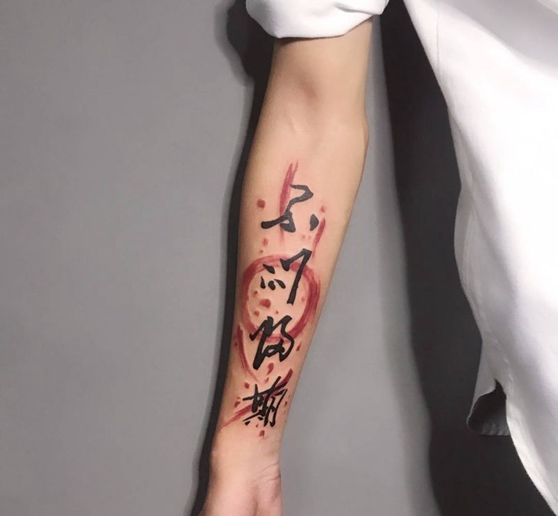 泼墨:不问归期纹身图片_手臂水彩水墨纹身图案