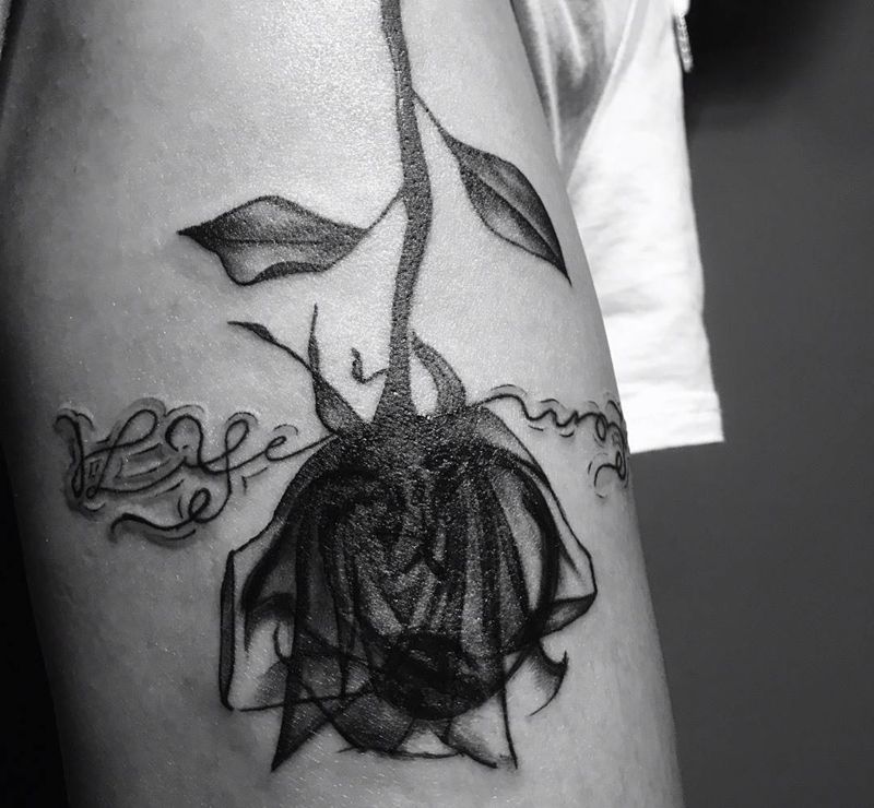 Free Style.纹身图片_腿部水墨花体字纹身图案