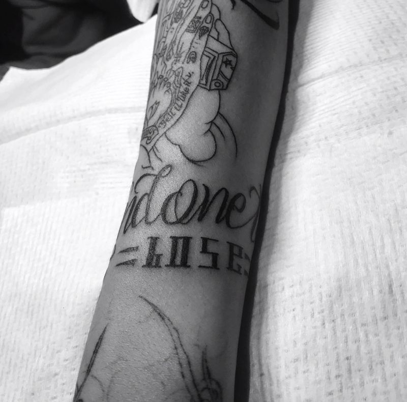 双手合十:50%纹身图片_手臂花体字纹身图案