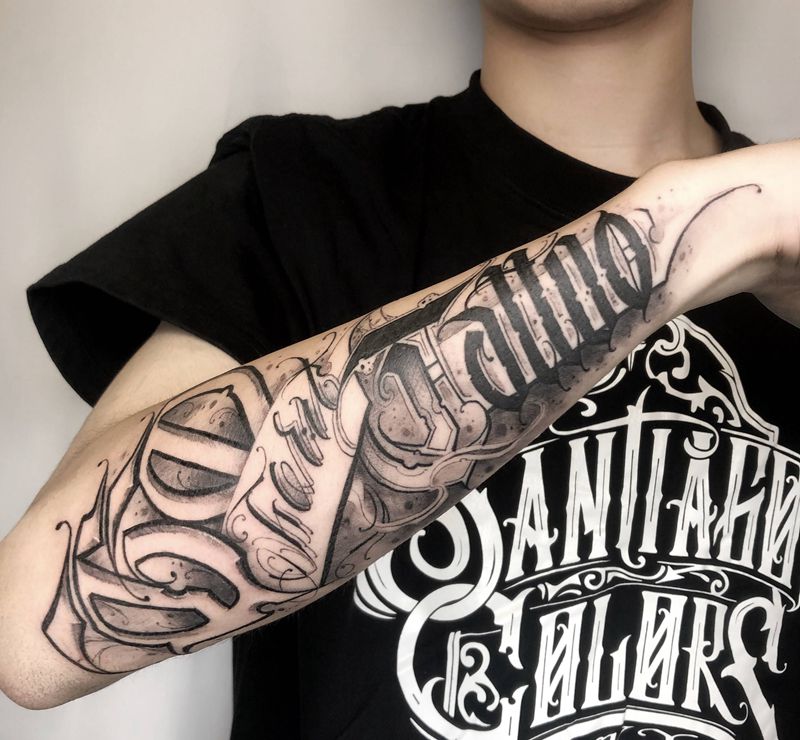 当前位置: 首页 >湖南省常德市纹身店-甲由刺青纹身图案>添新by嘴嘴纹身图片_手臂花体字纹身图案