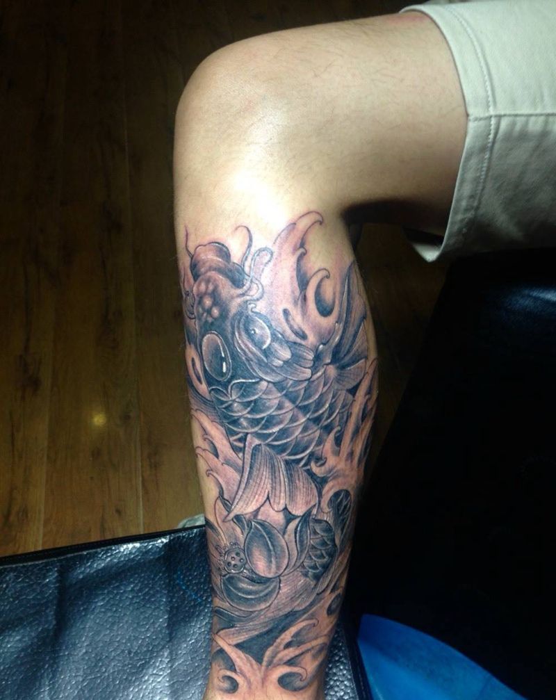 • T网红王老大花腿龙纹身图片_腿部新传统纹身图案