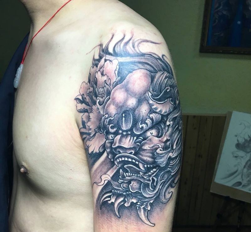 当前位置: 首页 >湖南省岳阳市纹身店-忠义堂刺青私人定制纹身图案>富贵唐狮纹身图片