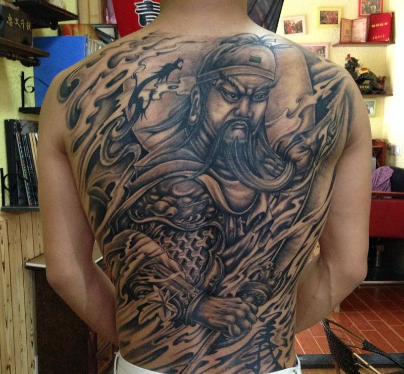 黑灰满背纹身图案