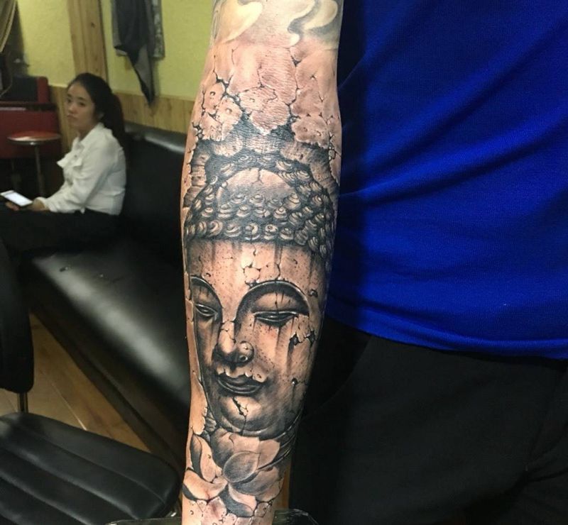 当前位置: 首页 >湖南省岳阳市纹身店-忠义堂刺青私人定制纹身图案>石雕佛头。。。纹身图片