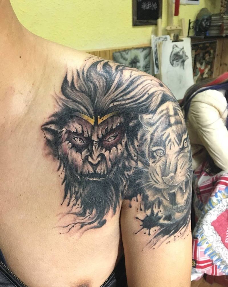 • 纹身吧推荐的披肩图腾半胛纹身图案作品展示