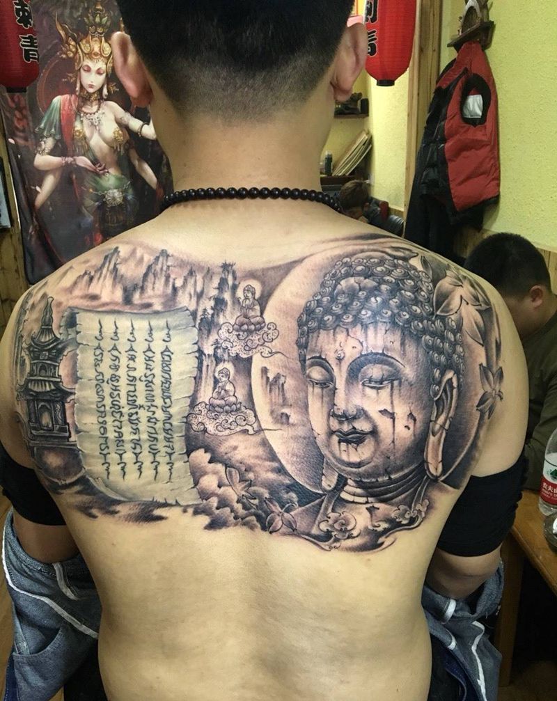 当前位置: 首页 >湖南省岳阳市纹身店-忠义堂刺青私人定制纹身图案>旧图添加元素 阿弥陀佛。纹身图片