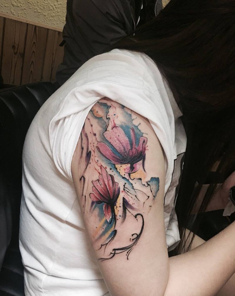 • 女性大花胸纹身_43张霸气漂亮的女性大花胸纹身图案作品