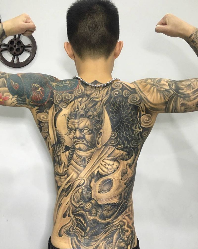 • 黑灰满背纹身图案