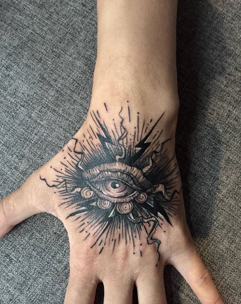 • 手背潮流时尚的玫瑰花眼睛纹身图案