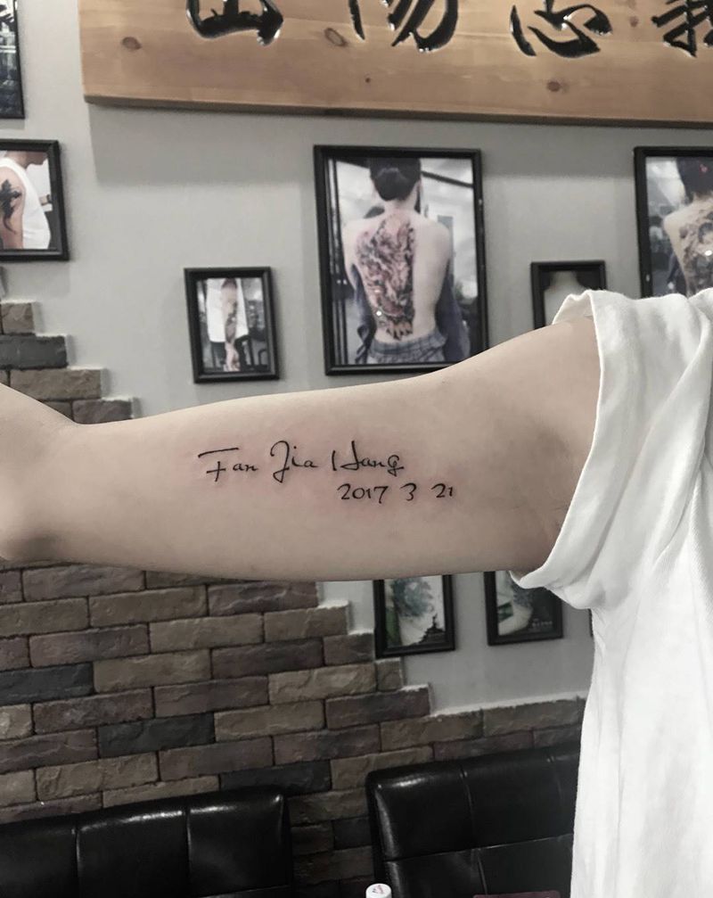 • T家庭图,一家四口生日纪念!纹身图片_手臂纹身图案